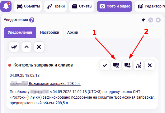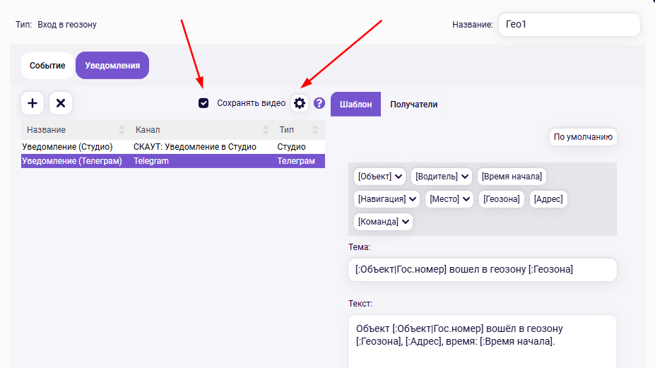 Любое уведомление в СКАУТ Студио Онлайн можно дополнить видеоотрезком с регистратора. Есть два типа уведомлений с видео: